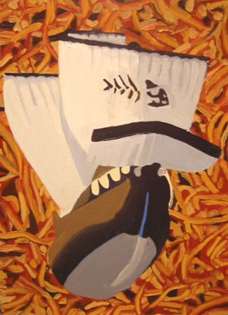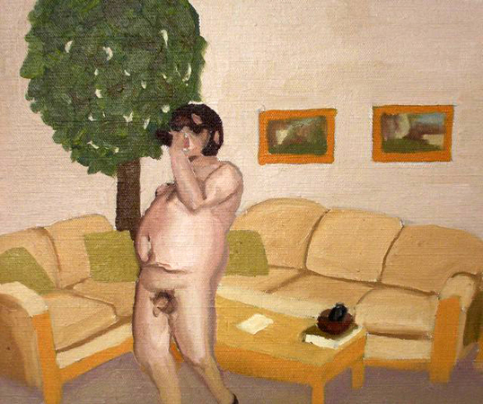 Palecek has coined the term "Nerd Arts" for this type of aesthetic production, which also shapes the artist's self-perception. The specific logic of digital communication moreover governs the distribution of the work: Palecek consistently paints one painting per day and immediately publicizes these on his blog, through which they are also sold. The choice of subject matter is often reactive or incidental, combining references to the artist's surroundings or resulting from interaction with other internet users.