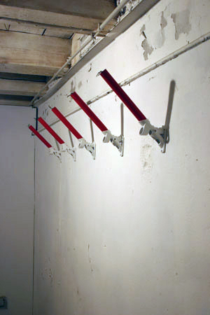 At once visceral and ethereal, the work "Orion" consists of five burnt out road flares placed in flagpole holders. A momento mori, the flares symbolize temporality and the suspension of a charged narrative.